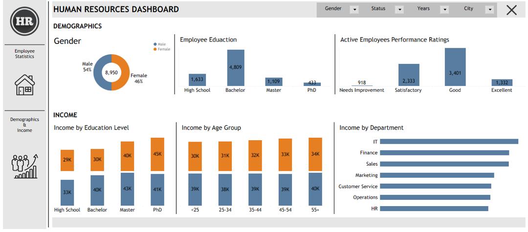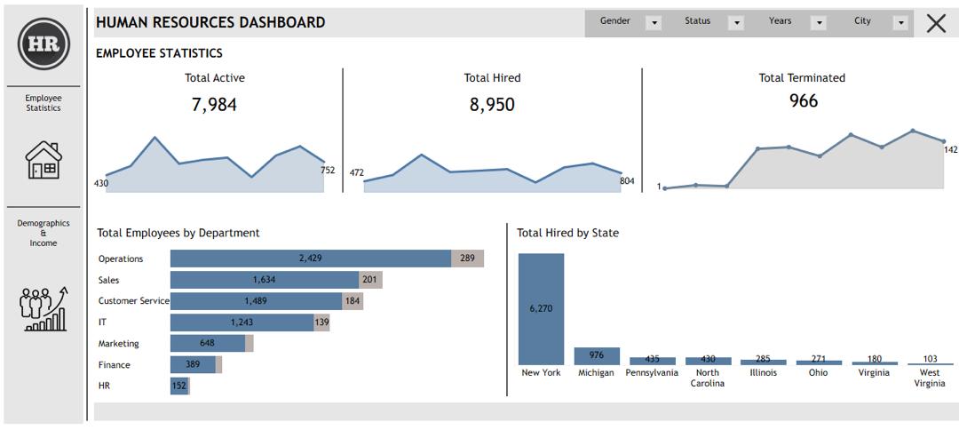 company's Human Resources Dashboard. It encompasses statistics on workforce activity,