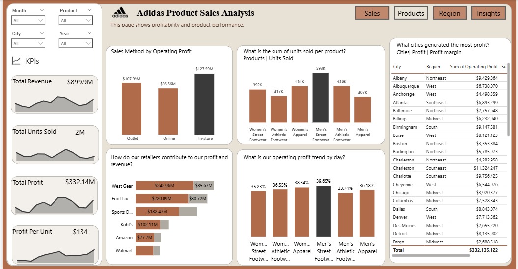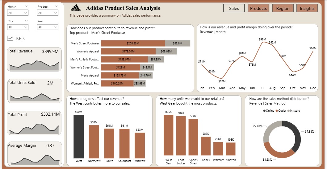 This project aims to analyze Adidas' product sales performance across products, sales channels,